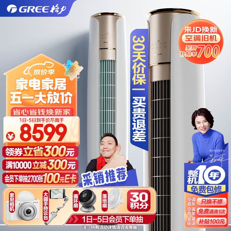 格力(GREE)空调 京东小家智能生态 3匹 云焕 1级能效变频 客厅空调立式空调柜机KFR-72LW/NhDe1BAj价格:8599.00元!