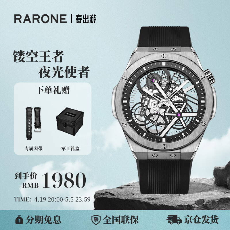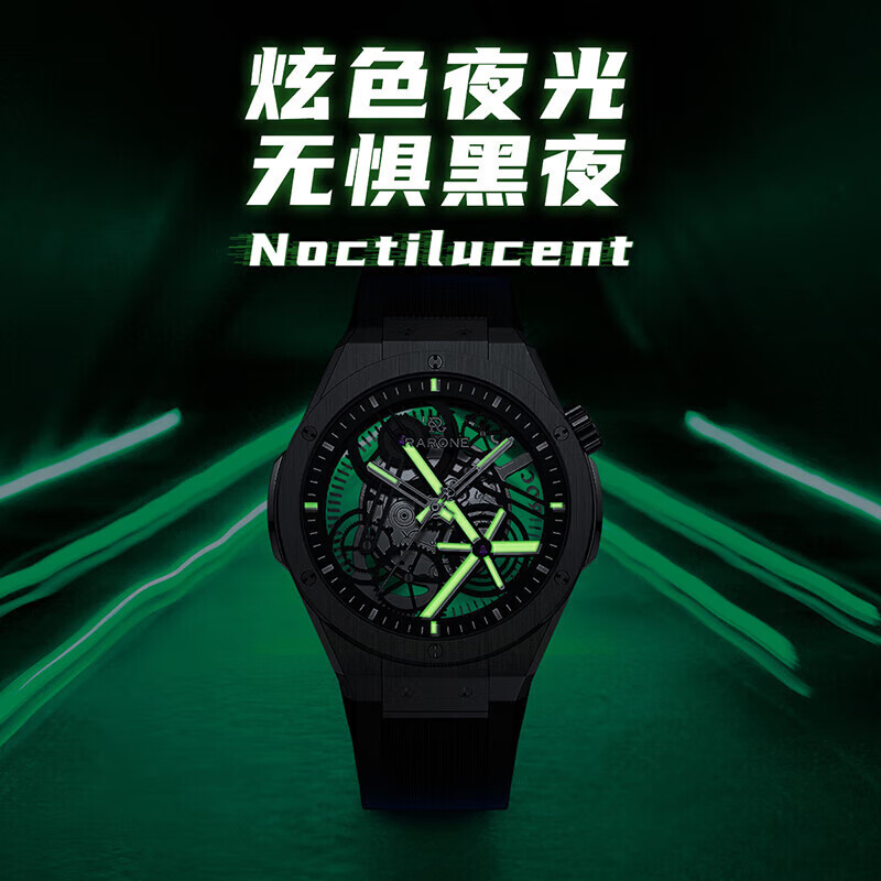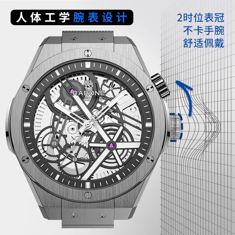 雷诺(RARONE)双子星·X时轮全景镂空机械表夜光国表品牌男士腕表价格:2259.00元!