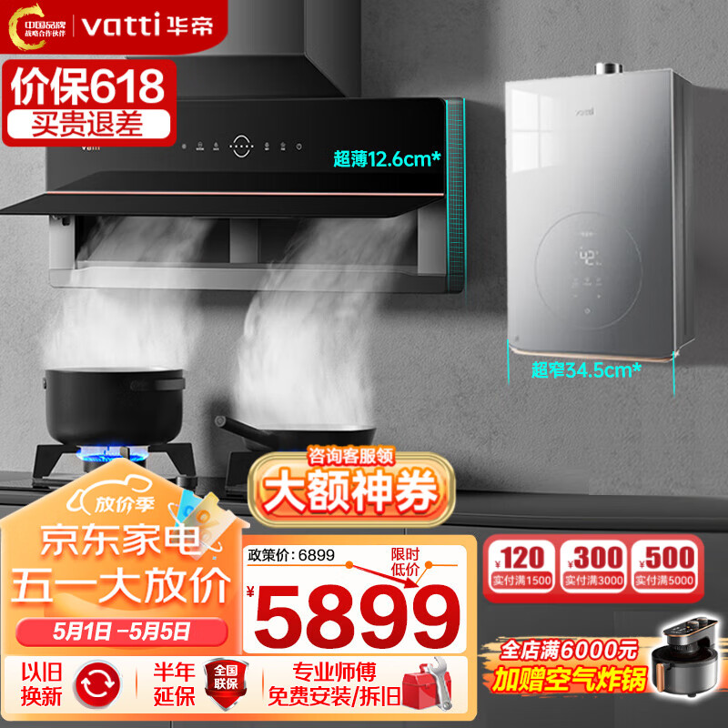 华帝(VATTI)油烟机灶具套装华帝官方理想家X5/11209/X11白色超薄近吸双腔25立方爆炒风量变频侧吸超薄天然气灶 天然气三件套(X5+可拆卸灶75B+165-16)价格:6799.00元!