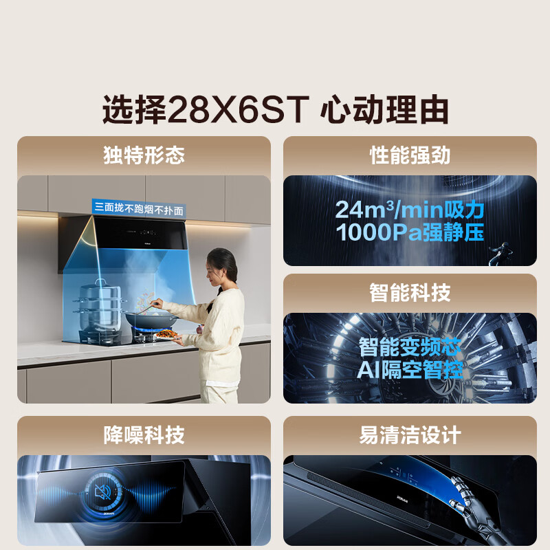 老板(Robam)油烟机28X6ST变频油烟机24风量抽油烟机【王一博同款】低噪音挥手感应智能语音控制抽油油烟机 搭配57B0X+HT322A-16【烟灶热三件套】 天然气探索家系列价格:6898.00元!