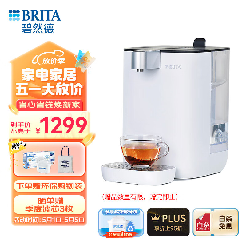 碧然德(BRITA) 台面净饮机即热直饮调温免安装台式净水器 白色 智能即热饮水机价格:1569.00元!
