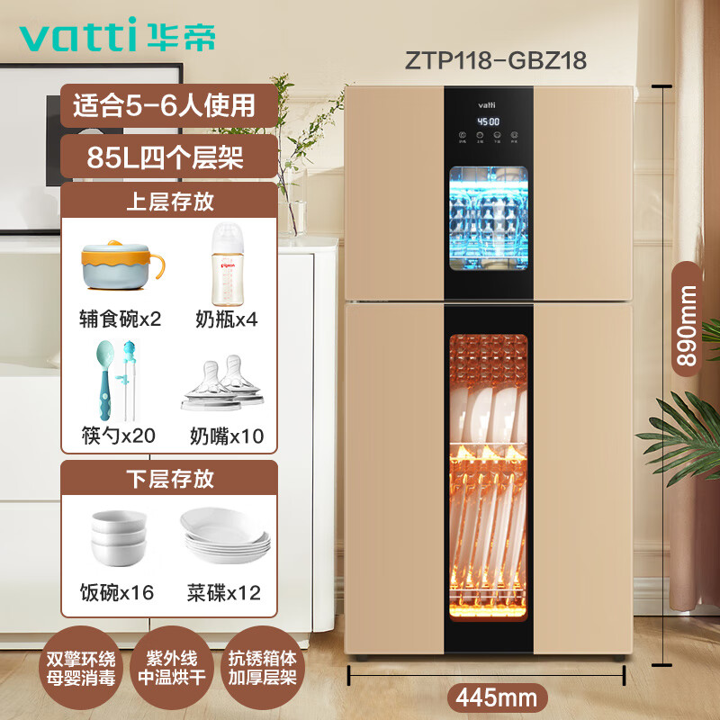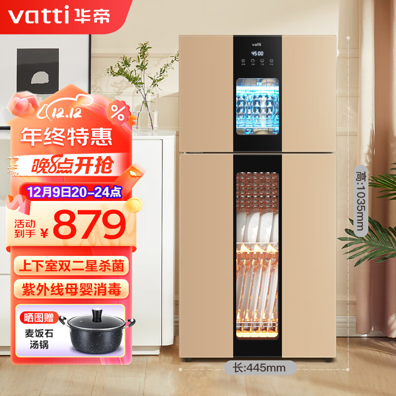 华帝(VATTI)消毒柜家用立式小型高温紫外线双擎环绕宝宝奶瓶消毒餐具消毒碗柜不锈钢二ZTP118-GBZ18价格:959.00元!