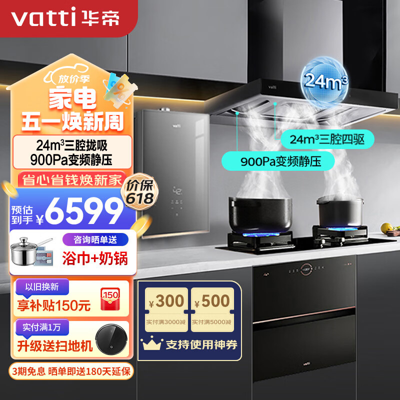 华帝(VATTI)抽油烟机创世S6燃气灶热水器消毒柜厨房多件套 i11206+72B+152-16+13036(天然气)价格:6599.00元!