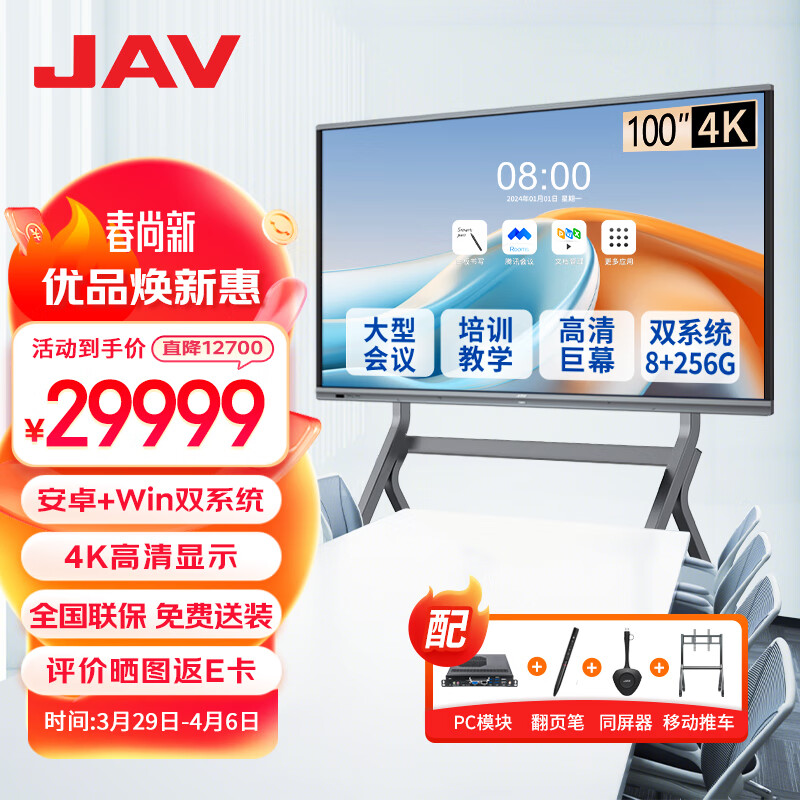 JAV会议平板一体机智能远程视频会议系统多媒体教学一体机电子白板智慧屏触摸屏100英寸科技版价格:29999.00元!