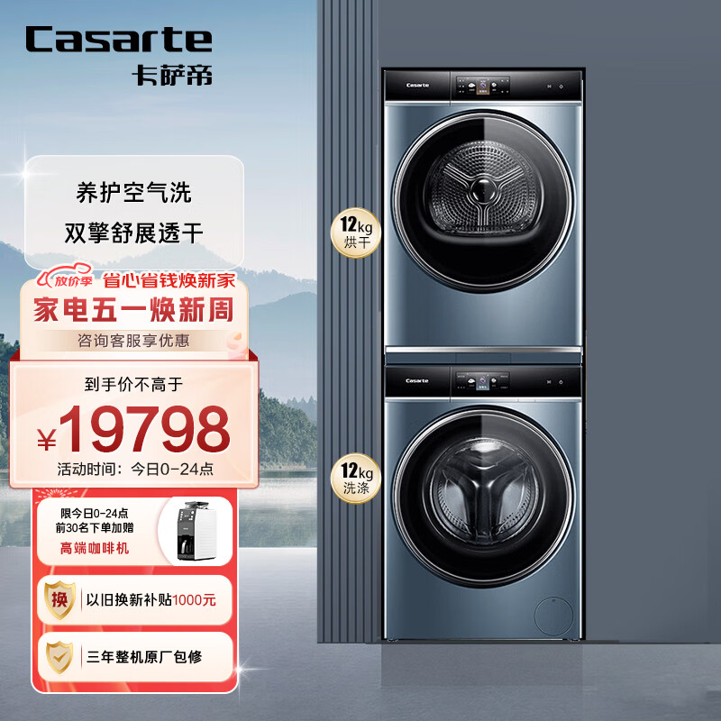 卡萨帝(Casarte)纤诺和美洗烘套装纤诺5月光宝盒12公斤滚筒洗衣机+家用热泵烘干机 平嵌D12L5LU1+12FL5TU1价格:19798.00元!