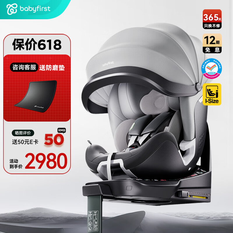 宝贝(Babyfirst)灵悦Pro婴儿童宝宝座椅汽车用0-4-7岁360度旋转 极地灰R155A价格:3980.00元!