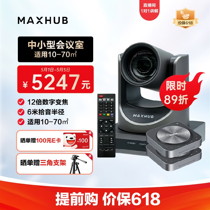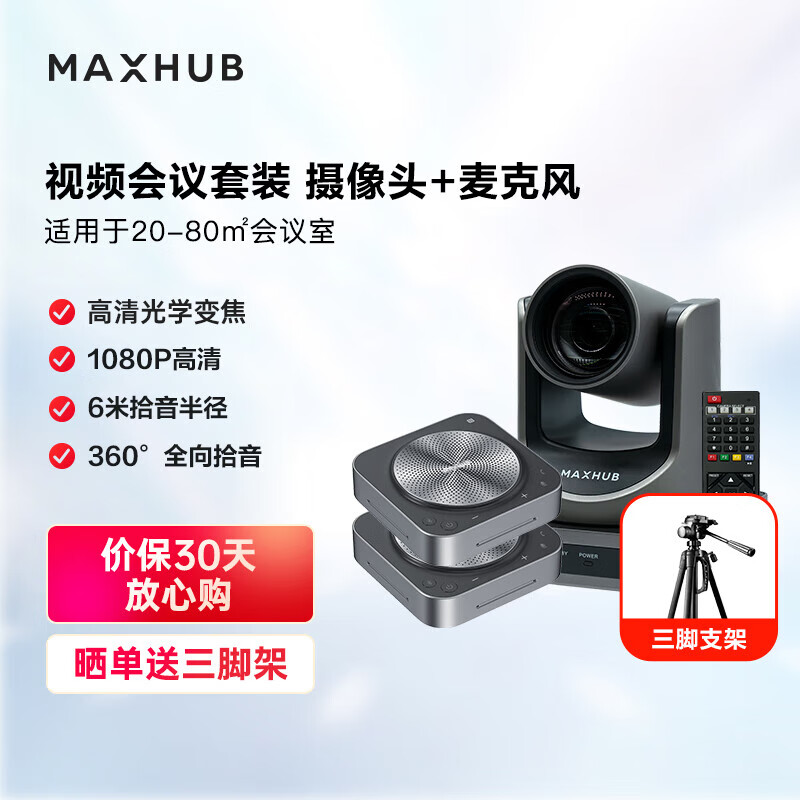 MAXHUB视频会议套装6米拾音半径全向麦克风BM31*2+1080P高清会议摄像头SC61A云台可旋转高清光学变焦价格:5247.00元!