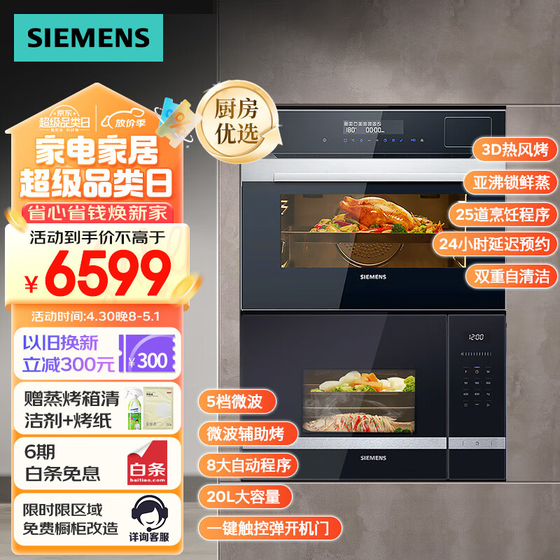 西门子(SIEMENS)微波炉嵌入式蒸烤箱一体机套装智能蒸汽烤箱蒸箱二合一BE525+CS389价格:6599.00元!