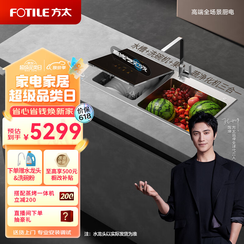 方太水槽洗碗机家用 高能气泡洗 升级41升大容量水槽 跨界三合一 加强除菌 洗海鲜果蔬去农残CT03BL价格:5299.00元!