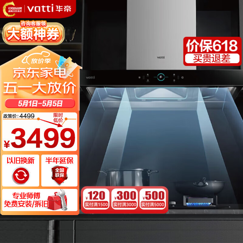 华帝(VATTI)油烟机 欧式抽油烟机燃气灶套装家用三腔变频.创世S7自动清洗24立方爆炒风量爆吸i11207厨房三件套 万人加购 烟灶套装(207烟机+5.0kW天然气)价格:3999.00元!