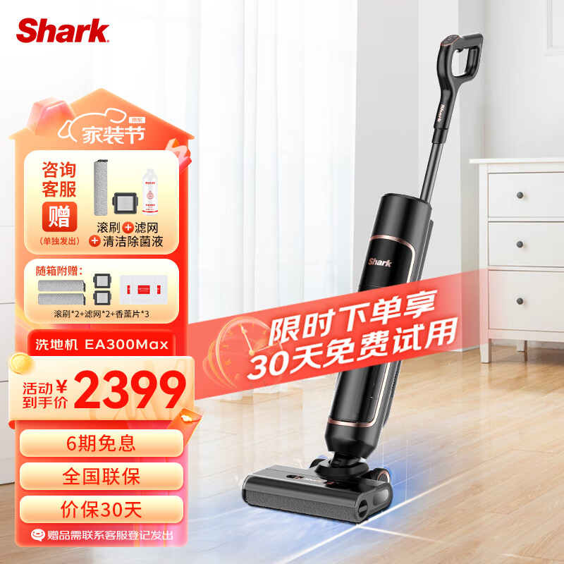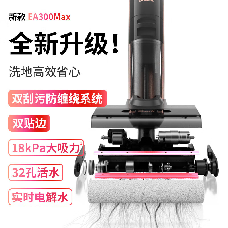 shark鲨客 防缠绕无线智能洗地机 家用拖地机双贴边 实时电解除菌 洗地机吸拖一体EA300Max价格:2499.00元!