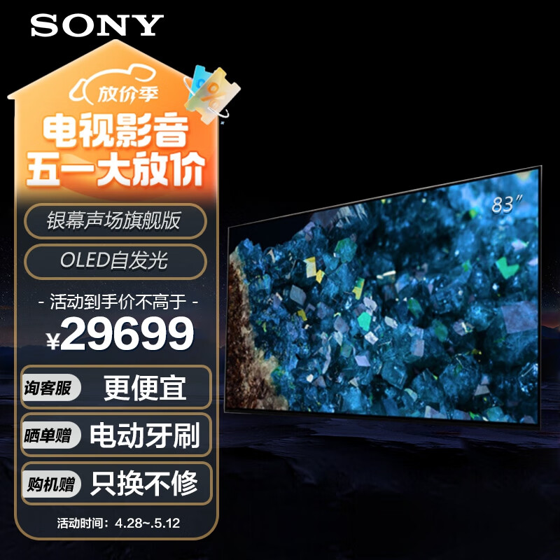索尼(SONY)XR-83A80L 83英寸 OLED自发光 屏幕发声 安卓智能电视 XR认知芯片游戏增强器价格:29699.00元!