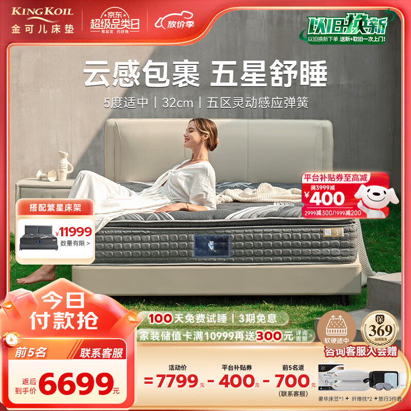 金可儿(Kingkoil)乳胶床垫五星酒店经典升级款五区独袋弹簧繁星B+床垫1.8米*2米价格:7799.00元!