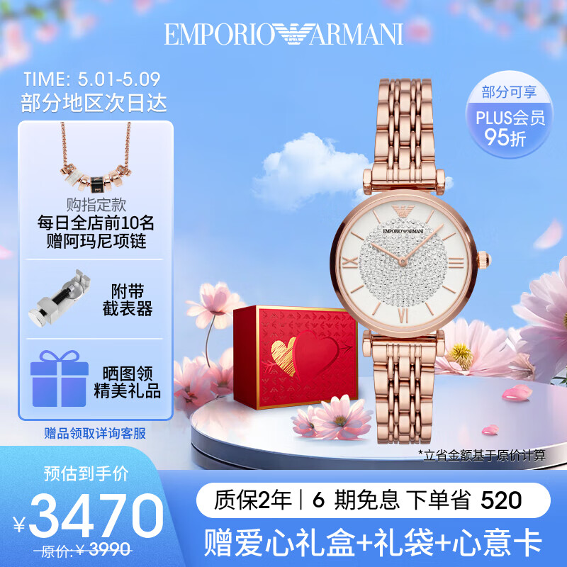 安普里奥·阿玛尼(Emporio Armani)手表女士满天星钢带石英时尚女表送老婆生日礼物 女友AR11244价格:3570.00元!