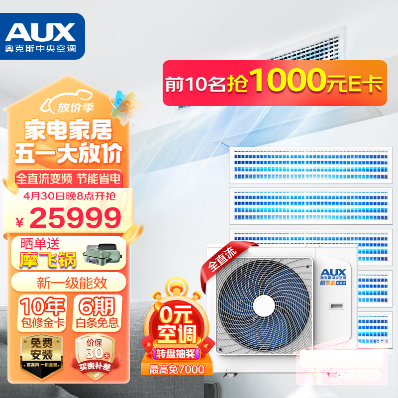 奥克斯(AUX)中央空调大6匹一拖五家用小多联机风管机1级能效全直流变频嵌入式空调适用四室一厅DLR-H160W(G1)价格:25999.00元!