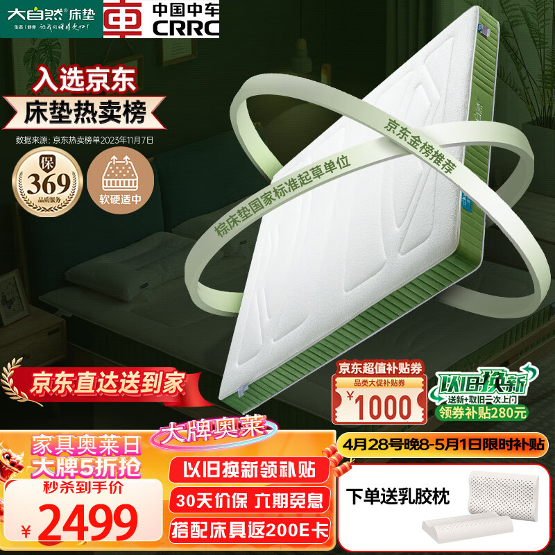 大自然山棕床垫椰棕床垫 可定制榻榻米偏硬棕垫 森梦 1.5米*2米*7厘米价格:2949.00元!