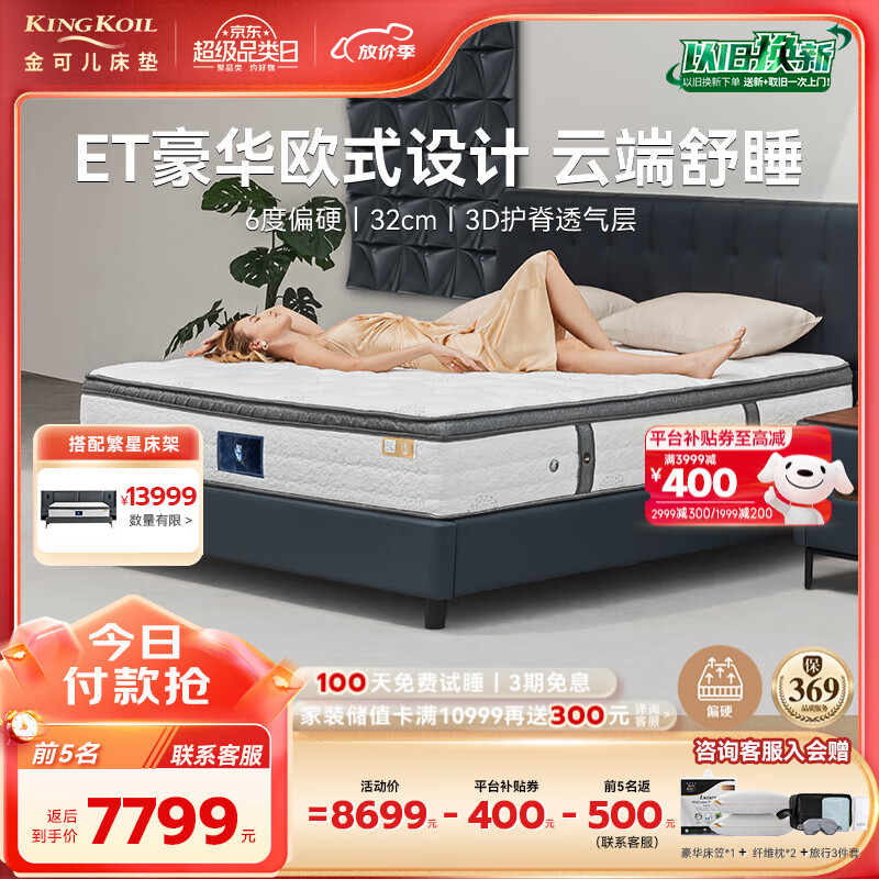 金可儿(Kingkoil)乳胶床垫五分区独立弹簧海绵床垫软硬适中繁星C+床垫1.5米*2米价格:8699.00元!