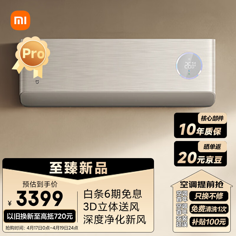 小米1.5匹 新风空调Pro 超一级能效 变频冷暖 60m3/h大新风量 空调挂机 KFR-35GW/F5A1 以旧换新价格:3399.00元!
