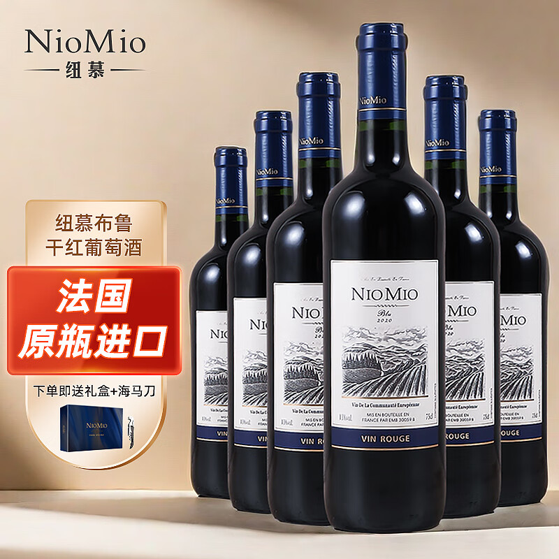 纽慕(NIOMIO)法国原瓶进口干红葡萄酒红酒年货节日送礼物礼盒箱装750ml*6价格:199.00元!