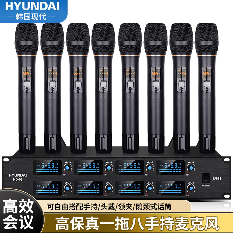 HYUNDAI HD-08 专业一拖八手持无线话筒会议舞台演讲电容手持麦克风一拖八价格:1689.00元!