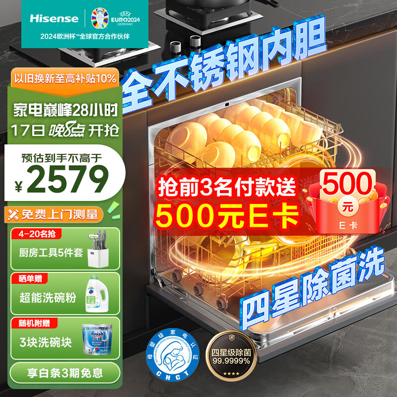 海信(Hisense)洗碗机12套嵌入式一级水效全腔洗 洗消烘存一体自清洁 四星消毒家用可灶下安装洗碗机C310价格:2699.00元!