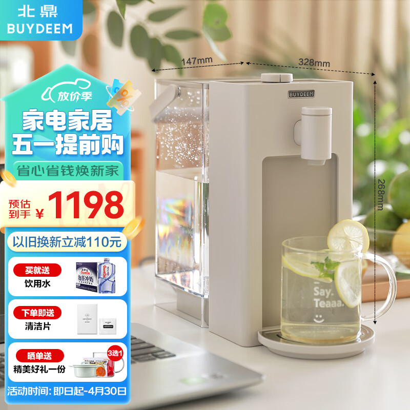 北鼎(Buydeem)台式饮水机办公室桌面即热式饮水机速热饮水机泡茶机智能饮水机一体机3L S903燕麦白 价格:1298.00元!