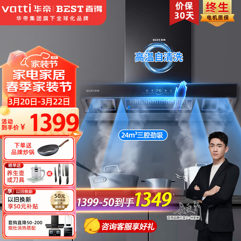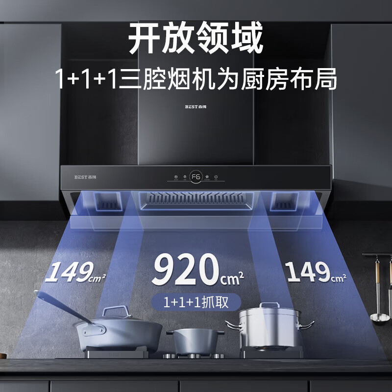 百得(BEST)华帝出品 抽油烟机 欧式顶吸三腔联动大吸力油烟机 24风量低噪挥手智控一键自清洁脱排油烟机 E612价格:1499.00元!