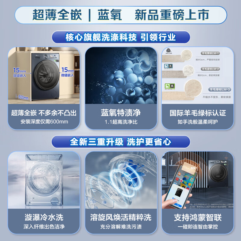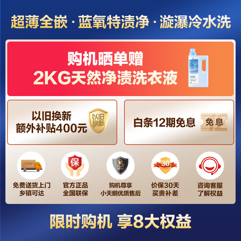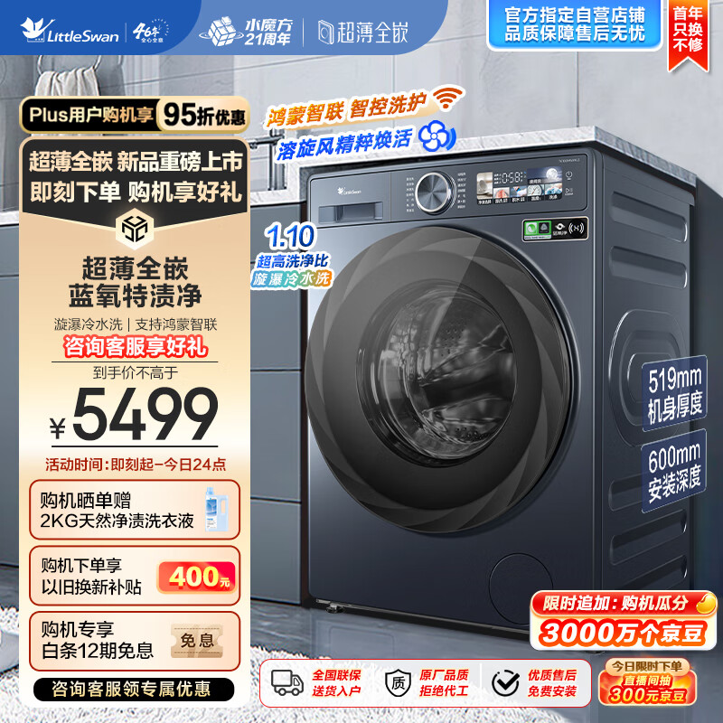 小天鹅(LittleSwan)滚筒洗衣机全自动 本色系列【TG100MS09LZ】 超薄全嵌 蓝氧特渍净 水魔方 1.1洗净比 10公斤价格:5499.00元!