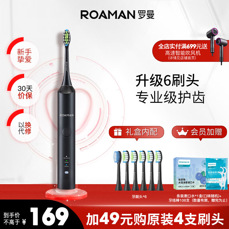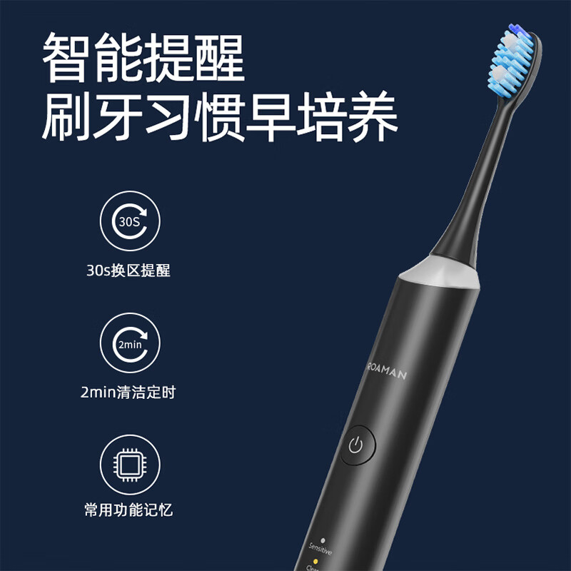 罗曼(ROAMAN)【母亲节礼物】电动牙刷情侣款节日礼物礼物 入门款 3种模式洁牙护龈 6支杜邦刷头 T3增配黑色款价格:169.00元!
