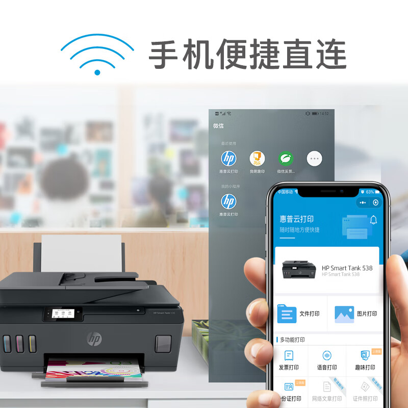 惠普(HP)538 彩色无线连供大印量多功能喷墨打印机? 自动输稿 家庭打印 商用办公 (打印、复印、扫描)价格:1399.00元!
