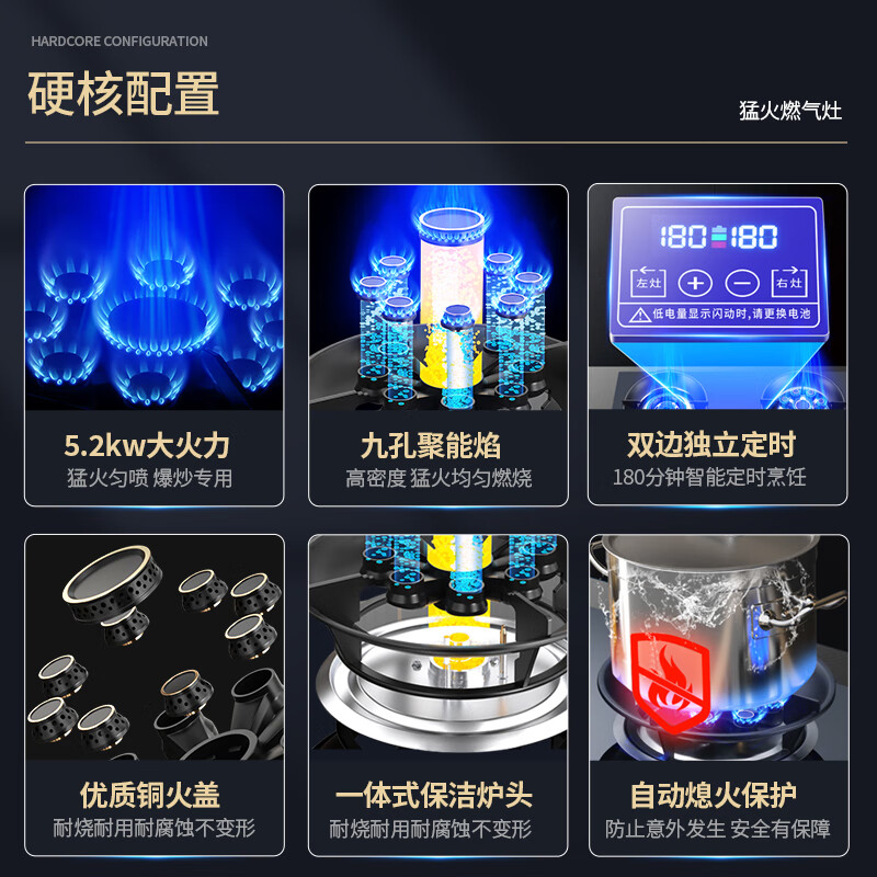 灶具面板材质:钢化玻璃