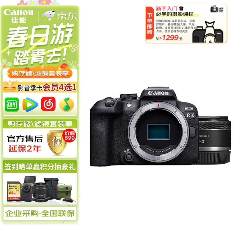佳能(Canon)EOS R10单机身+RF 50mmF1.8 STM镜头 扫街旅拍套装价格:9899.00元!