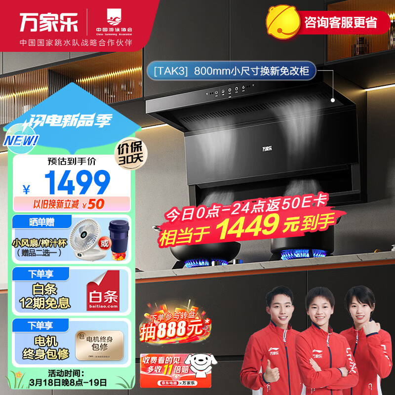 万家乐顶侧双吸油烟机 23立方小尺寸大吸力抽油烟机 6cm超薄齐平橱柜挥手智控自清洗油烟机CXW-360-TAK3价格:1599.00元!