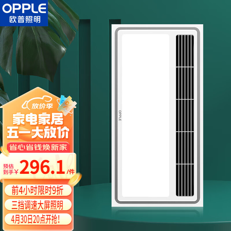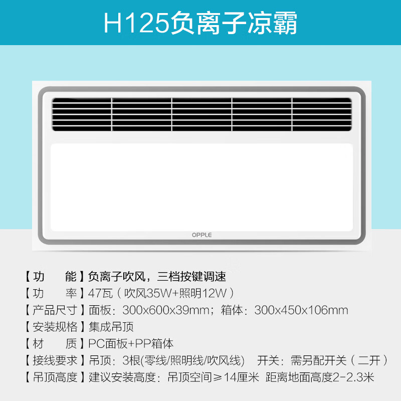 OPPLE欧普凉霸厨房卫生间集成吊顶大屏照明三档调速降温 JDSH125价格:329.00元!