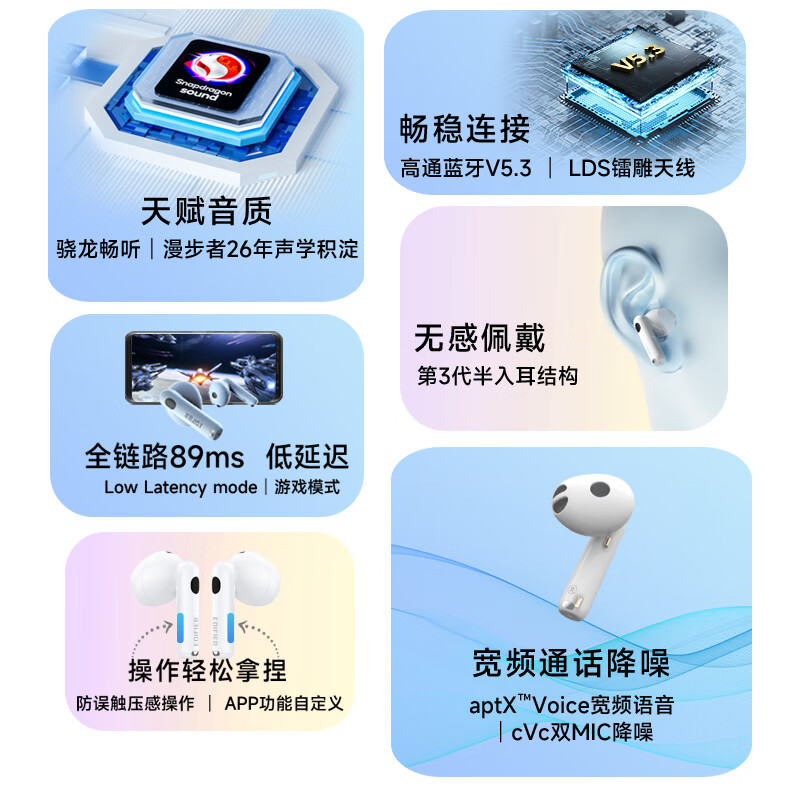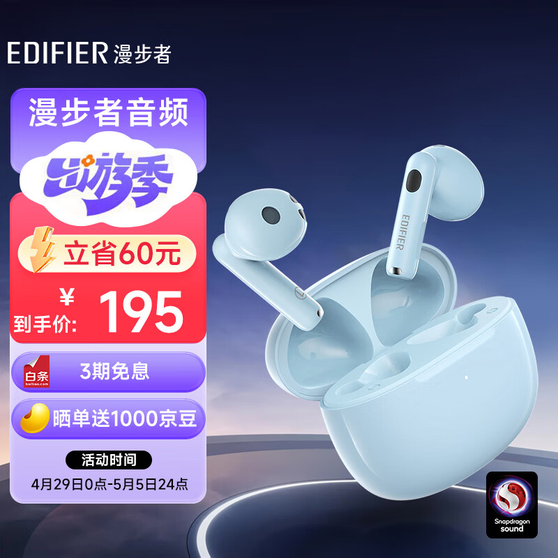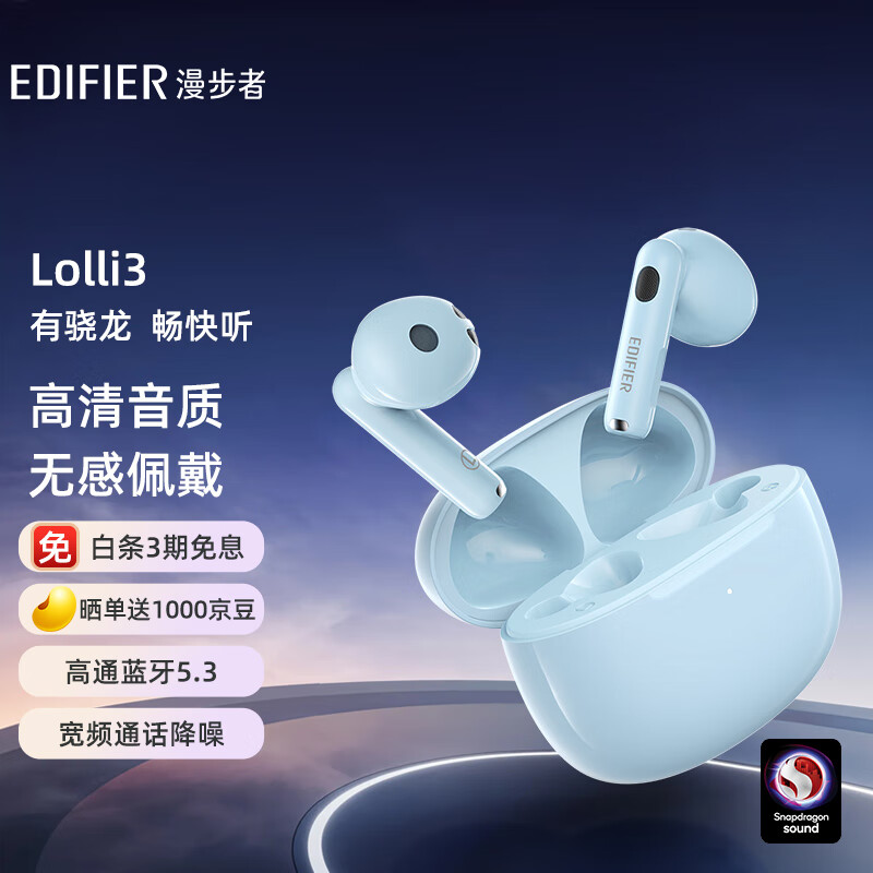 漫步者(EDIFIER)Lolli3 真无线蓝牙耳机 高通蓝牙5.3 适用苹果小米华为 薄雾蓝价格:195.00元!