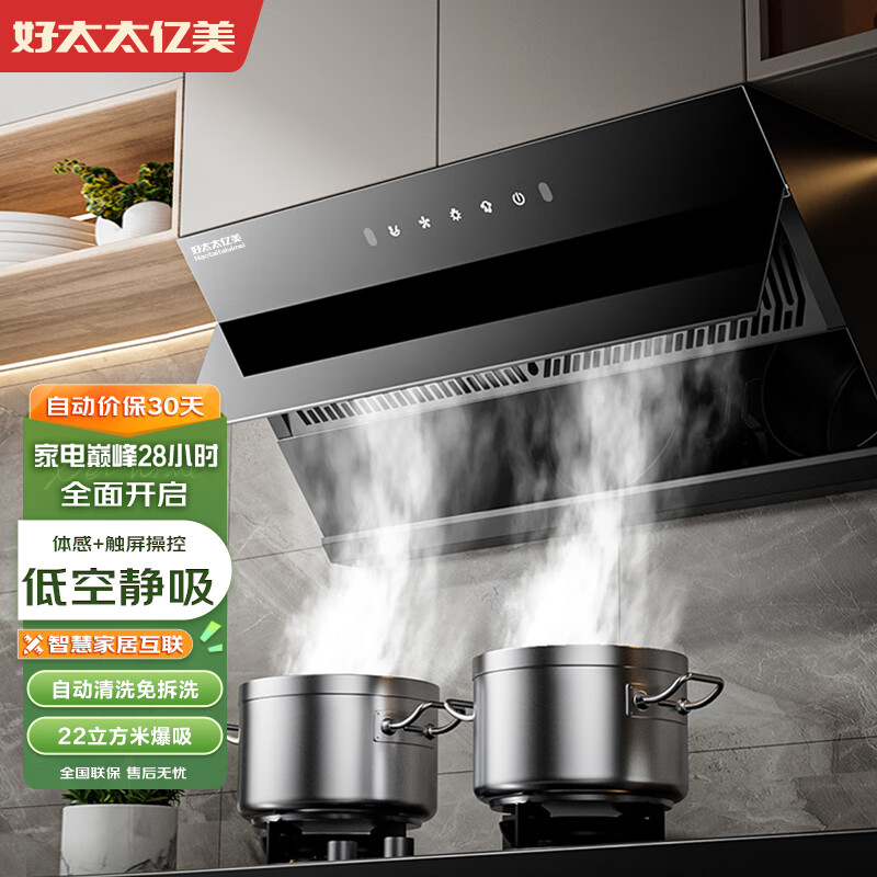 好太太亿美油烟机家用厨房吸烟机脱排大吸力侧吸式抽油烟机900宽自动开合 22立方大吸力CXW-238-839D900K价格:699.00元!