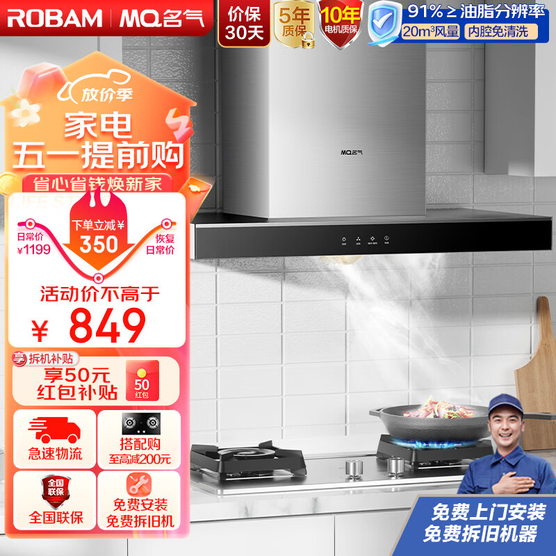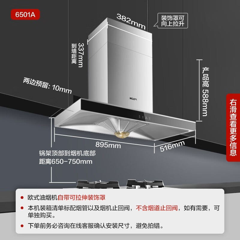 名气(MQ)老板抽油烟机 吸油烟机传统欧式油烟机家用厨房 20m3大吸力 脱排油烟机顶吸式6501A价格:849.00元!