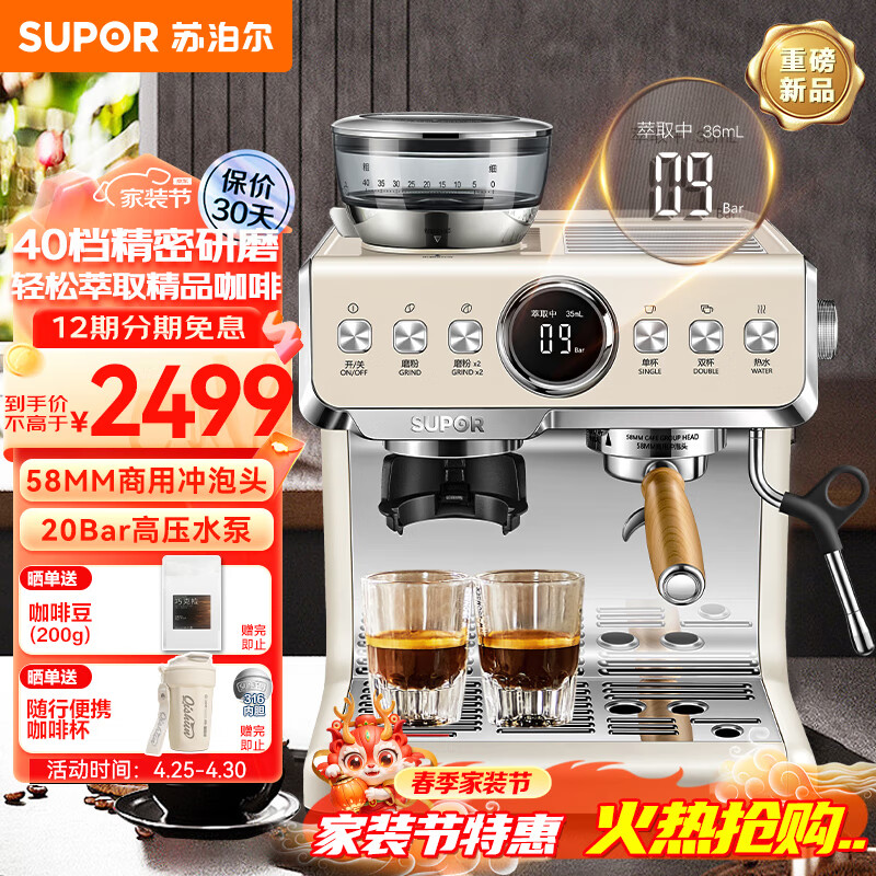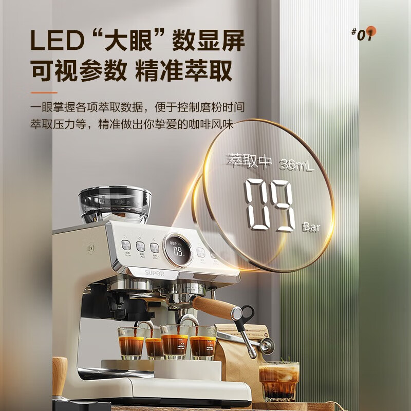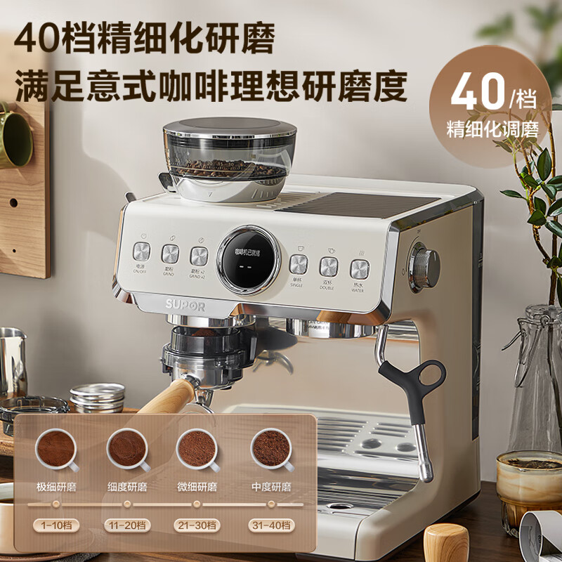 苏泊尔(SUPOR)意式家用浓缩萃取半自动咖啡机 礼物送长辈 办公室商用奶泡研磨一体机 全自动现磨咖啡 SW-CFB302价格:2499.00元!