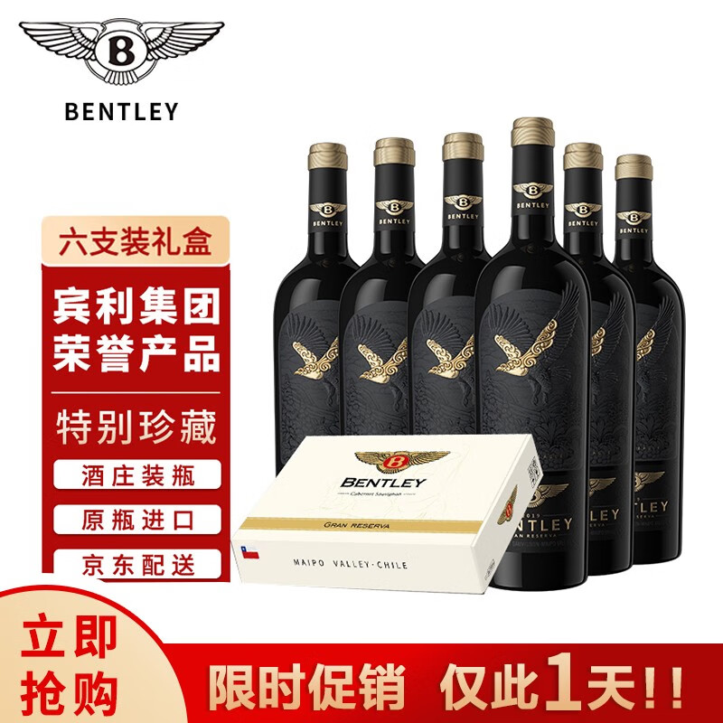 宾利(BENTLEY)智利原瓶进口红酒干红葡萄酒金鹰特别珍藏级送礼自饮红酒礼盒整箱价格:899.00元!