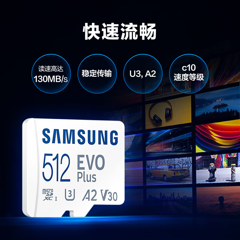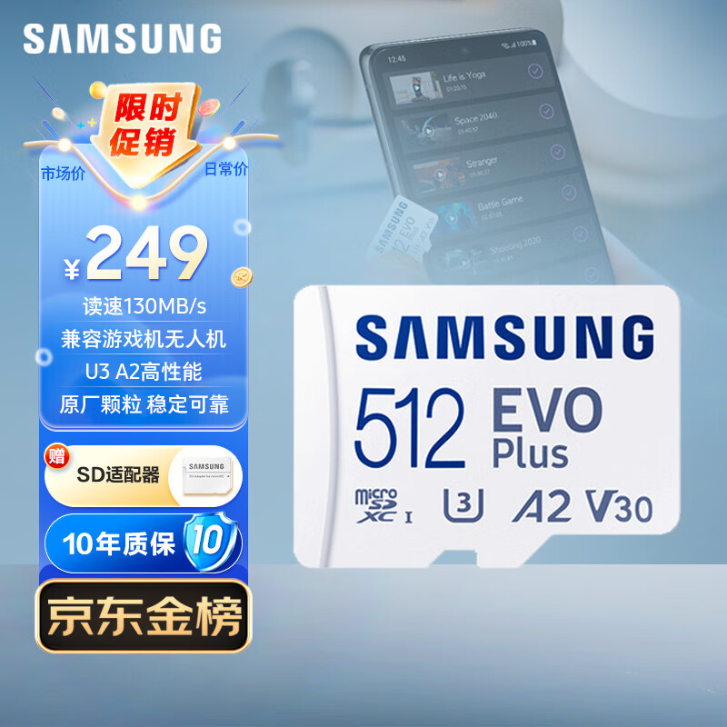 三星(SAMSUNG)512GB TF(MicroSD)存储卡EVOPlus U3V30A2读130MB/s 适用手机游戏机平板switch新老品随机发货价格:249.00元!