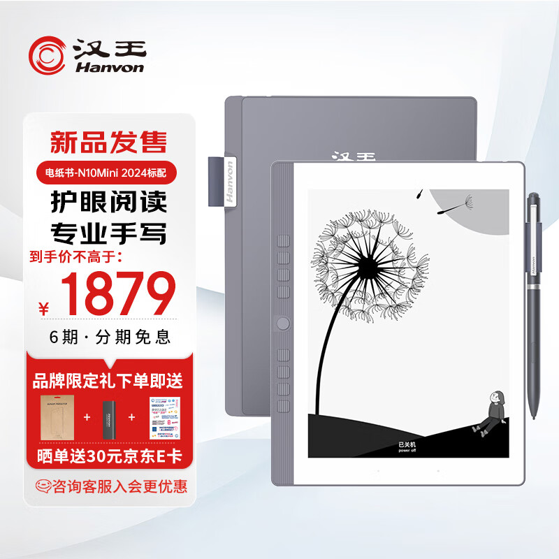 汉王(Hanvon)【张新成同款】N10mini2024 手写电纸本 7.8英寸电子书阅读器墨水屏电纸书平板电子笔记本价格:1899.00元!