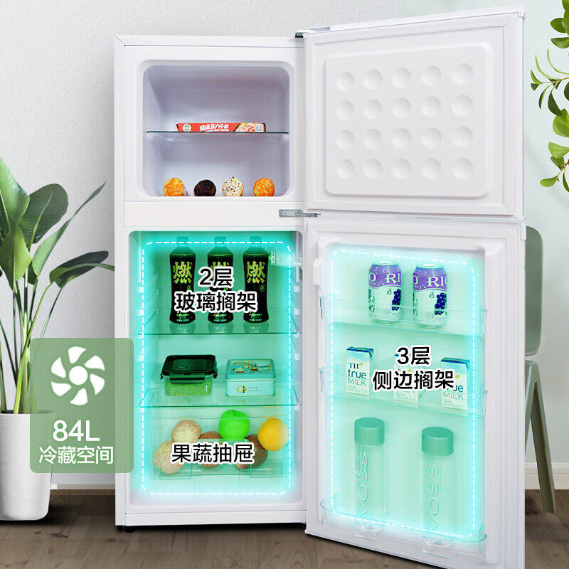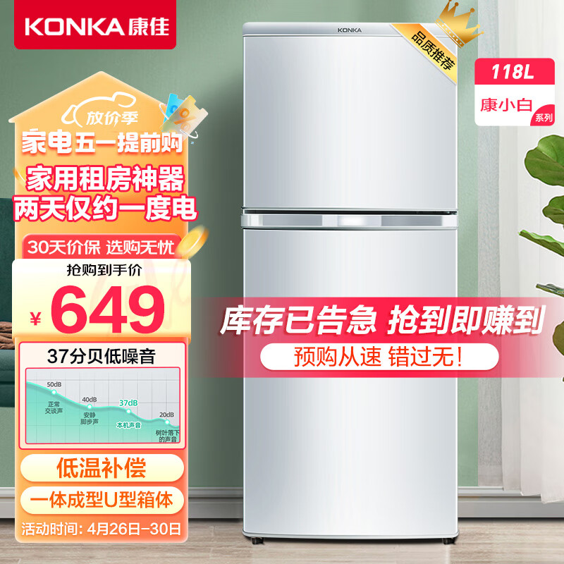 康佳118升两门双门二门冰箱节能低噪小型家用电冰箱迷你宿舍租房小巧不占地两天仅约一度电BCD-118GB2S价格:649.00元!