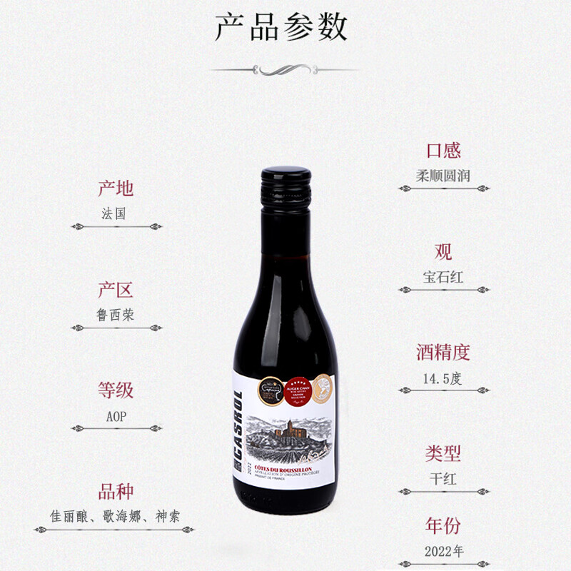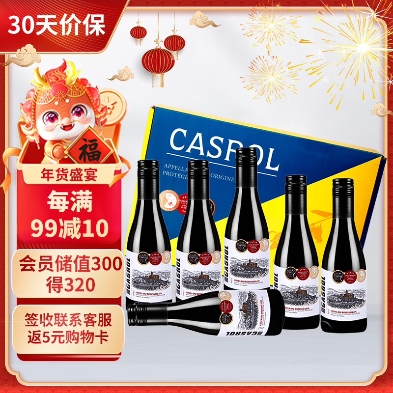 卡露传奇法国进口红酒礼盒AOC歌海娜干红葡萄酒187ml*6整箱装年货礼盒价格:99.00元!