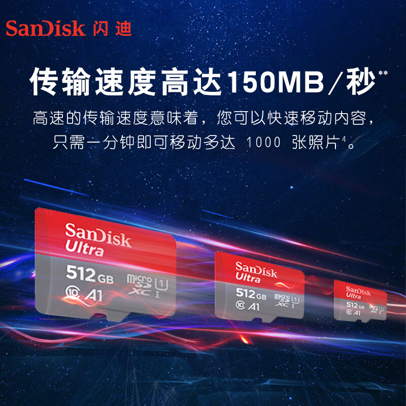 闪迪(SanDisk)512GB TF(MicroSD)内存卡 U1 C10 A1 高速移动版 读速150MB/s 手机平板游戏机存储卡价格:249.00元!