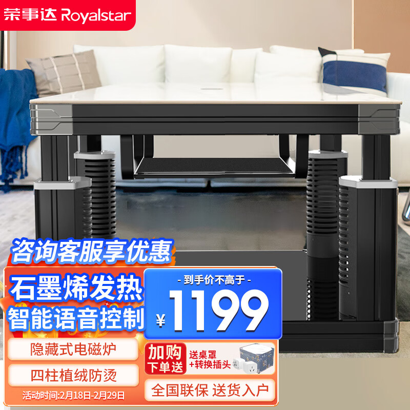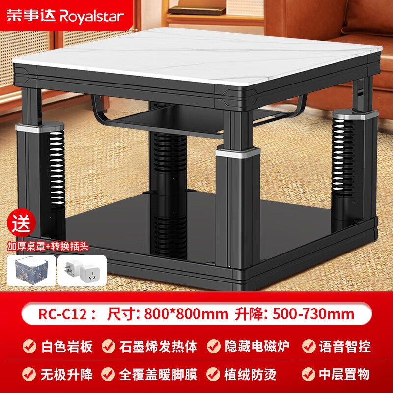 荣事达电暖桌0.8米正方形石墨烯发热烤火茶几带语音控制升降取暖桌家用电暖炉取暖器烤火桌RC-C12价格:1499.00元!