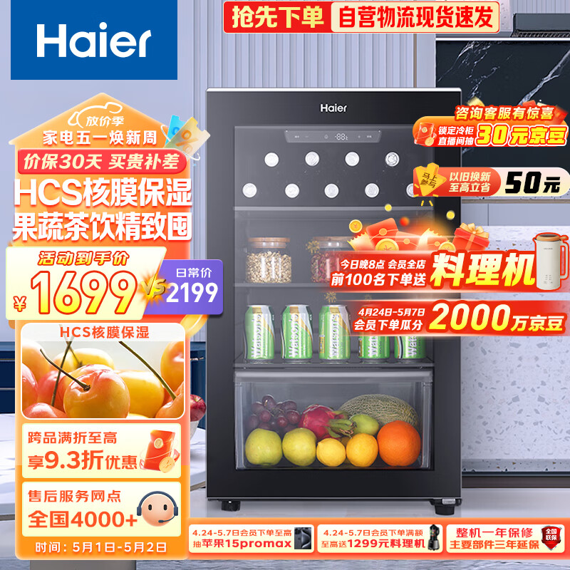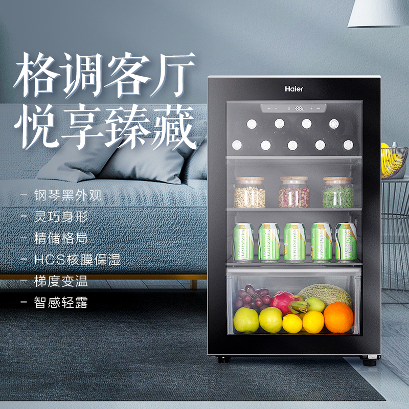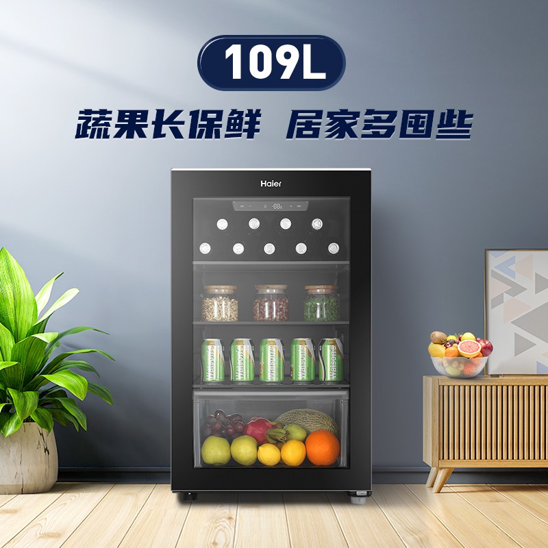 海尔(Haier)109升家用客厅办公室冷藏柜暖藏冰吧 饮料茶叶水果保鲜柜小型酒柜冰箱DS0109LHS6D1以旧换新价格:1699.00元!