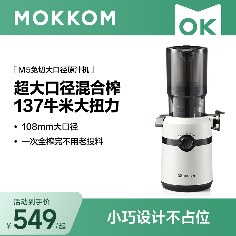 mokkom磨客大口径原汁机榨汁机汁渣分离家用低速果蔬多功能鲜榨果汁机可商用电动榨汁杯料理机M5白色价格:549.00元!