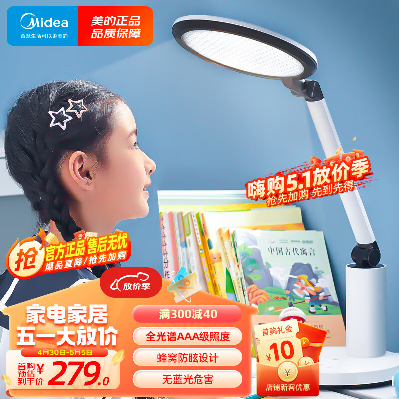 美的(Midea)AAA级护眼学习台灯全光谱儿童学生书桌阅读灯卧室床头灯小夜灯价格:339.00元!