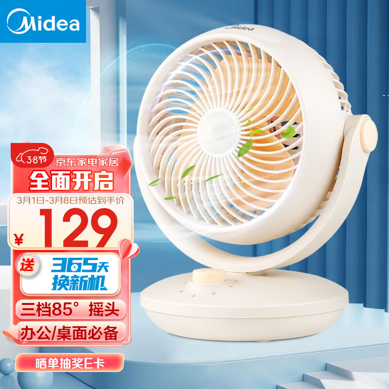 美的(Midea)电风扇家用风扇空气循环扇桌面小风扇手持迷你电扇便携小型宿舍轻音节能台扇 【3档循环扇】GAF18AD价格:159.00元!