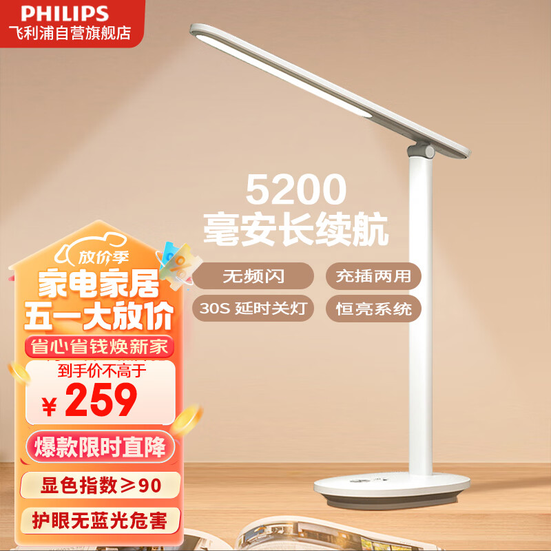 飞利浦(PHILIPS)充电台灯充插两用护眼台灯大学生宿舍床头学习台灯小雅5200毫安价格:363.00元!